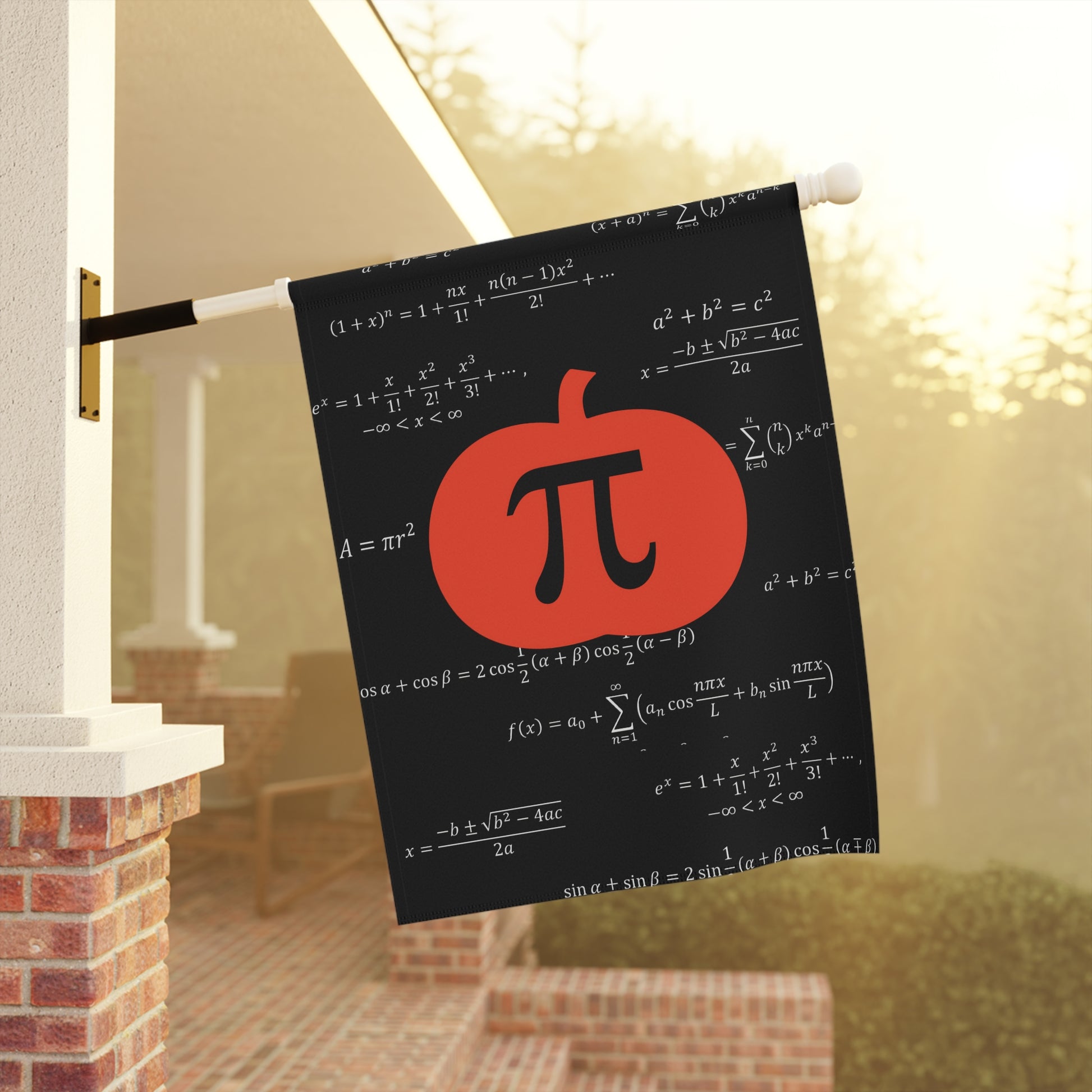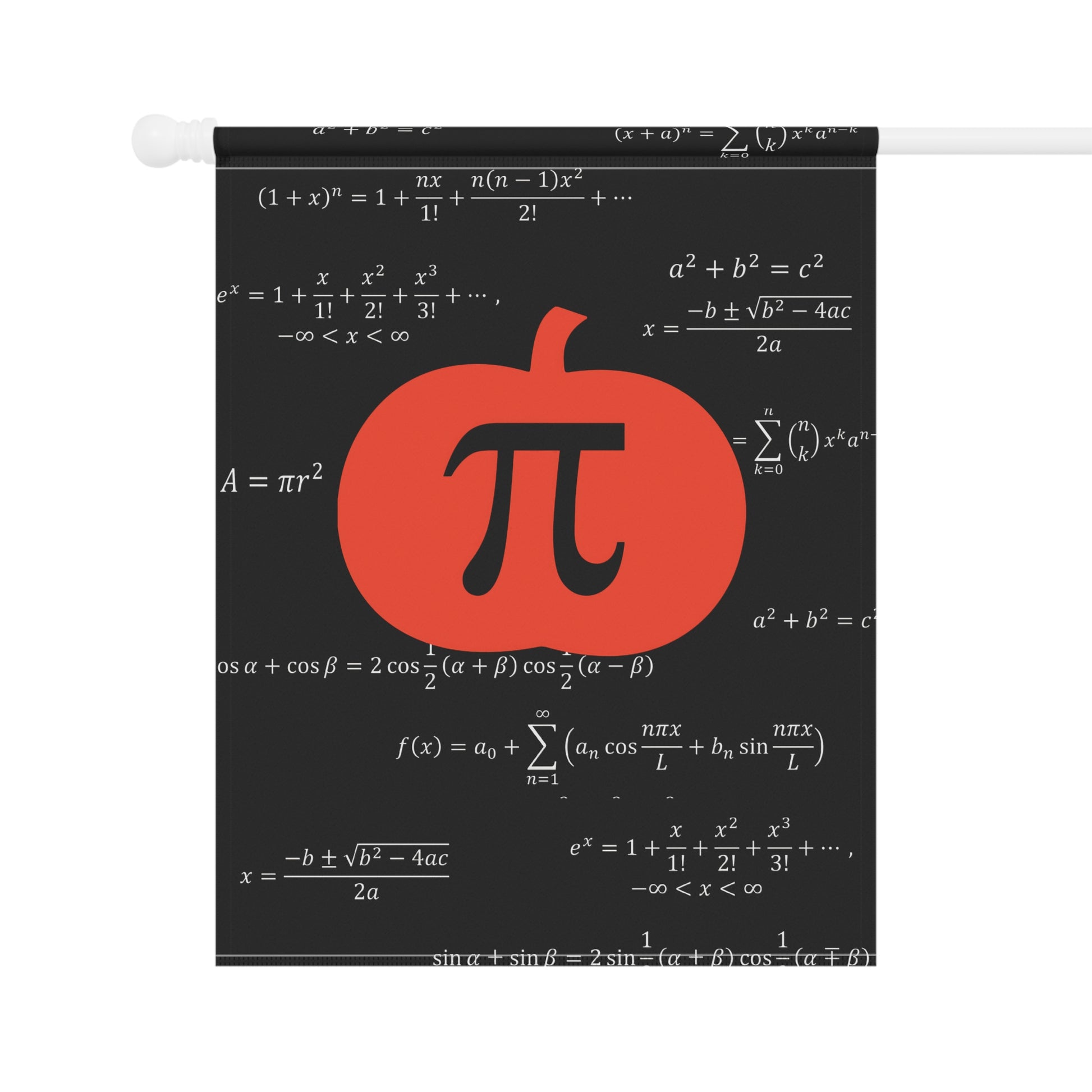 Celebrate fall with a geeky twist! This unique Pumpkin Pi garden flag is the perfect combination of autumn vibes and nerdy humor. Featuring a bold red pumpkin with a Pi symbol and surrounded by classic math equations, it's an eye-catching piece for math lovers, teachers, students, or anyone who appreciates clever wordplay.