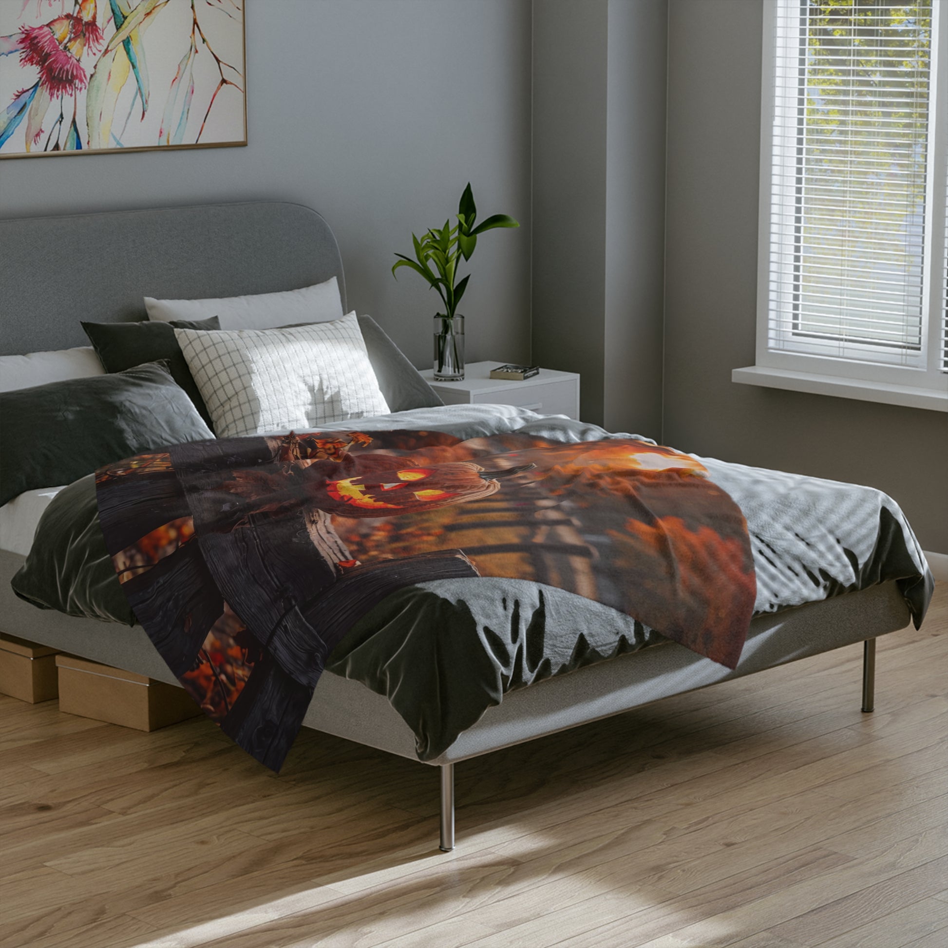 Rustic Autumn Jack-o'-Lantern Fence Halloween Plush Blanket
