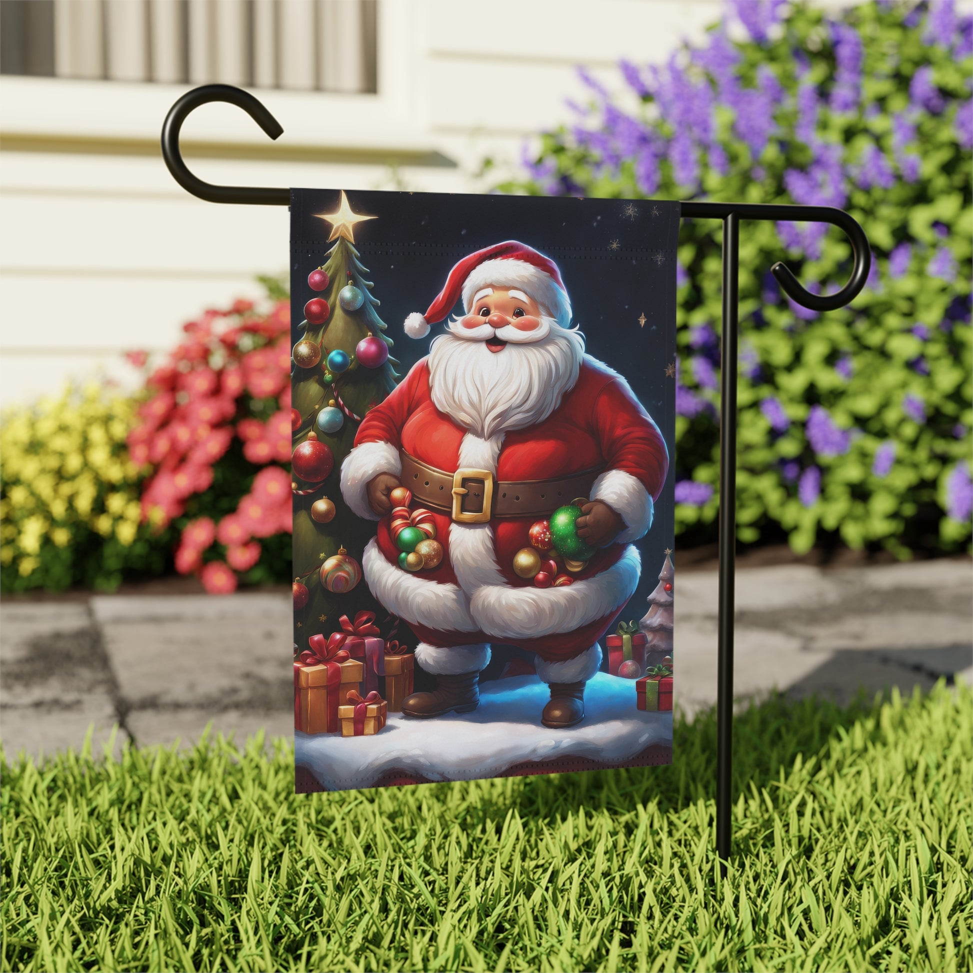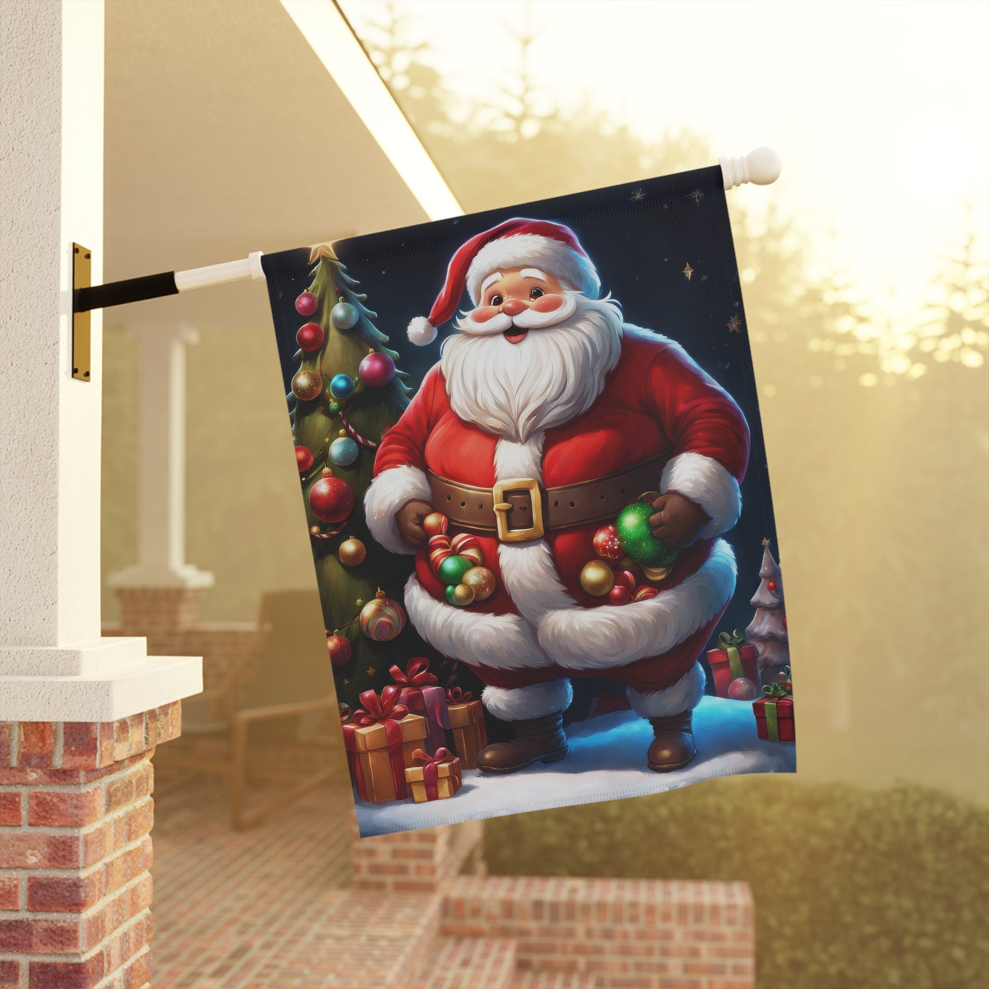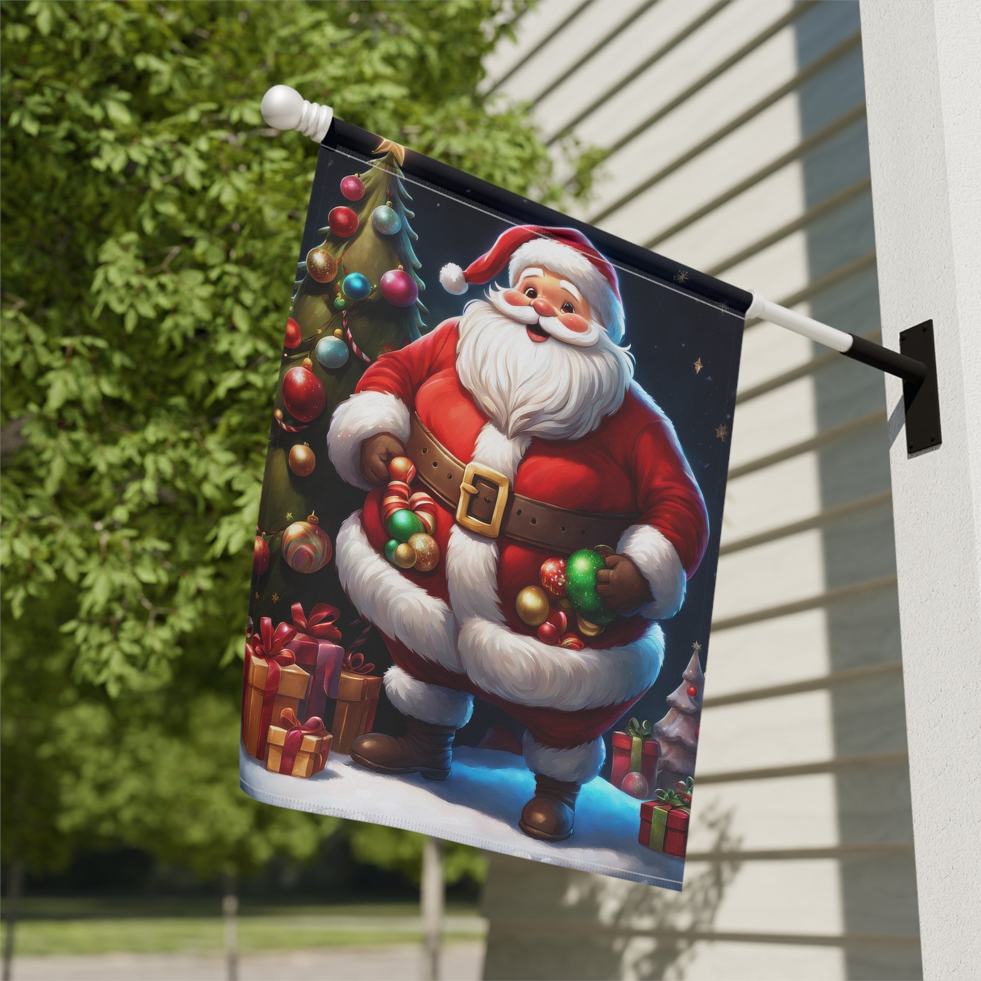 Make your holiday celebrations merry and bright with our festive Santa holiday flag! This adorable design features jolly ol' Saint Nick himself, bringing cheer and joy to your home. Perfect for decorating your front yard or hanging on your porch, this flag is sure to spread holiday cheer to all who see it.