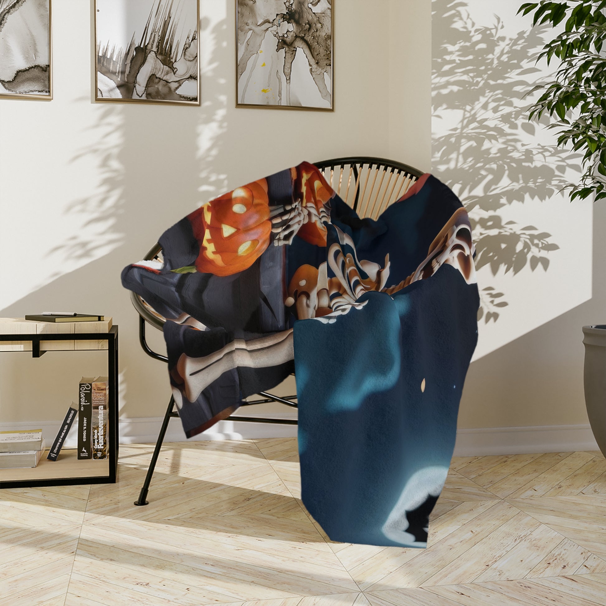 Skeleton with Jack-o'-Lanterns Halloween Blanket