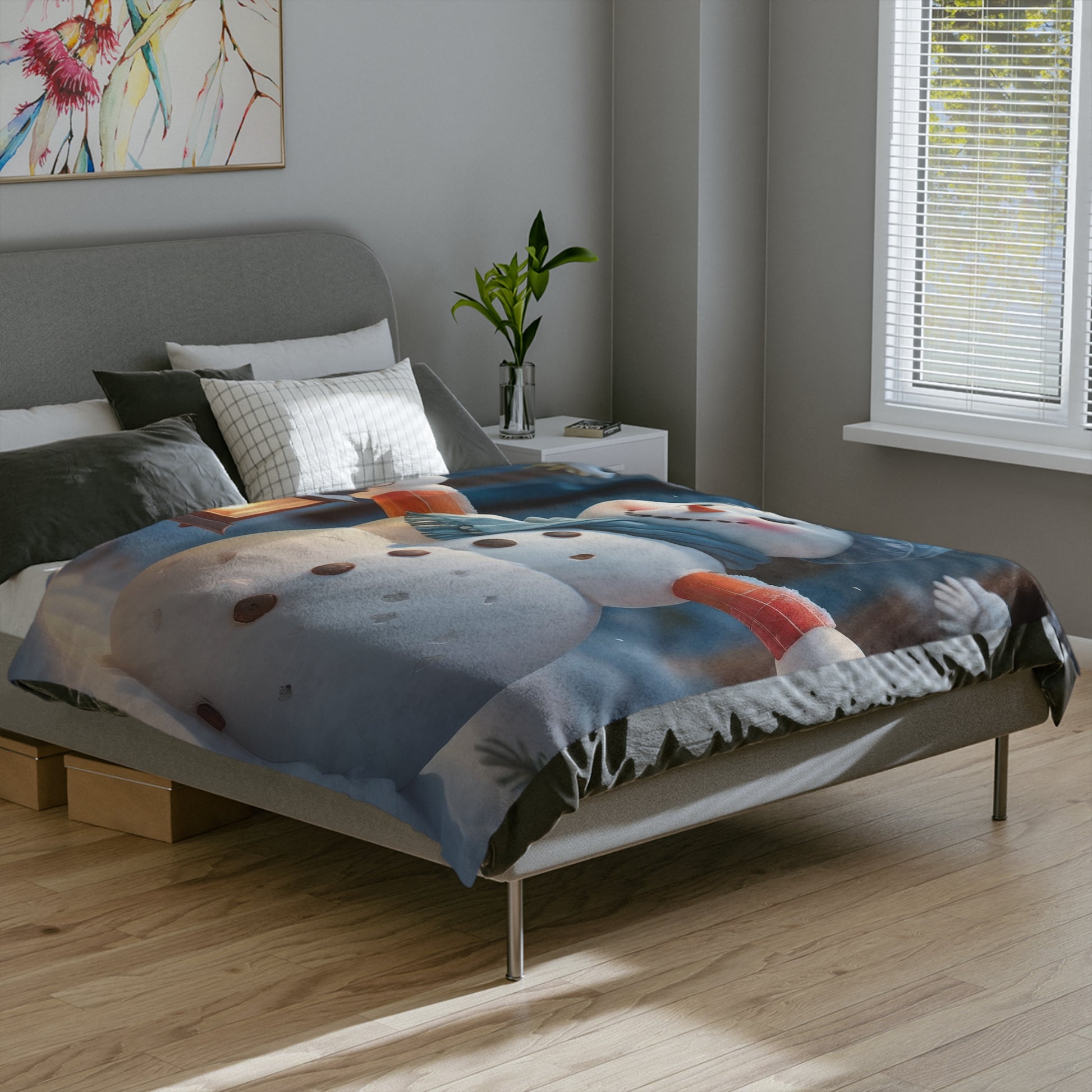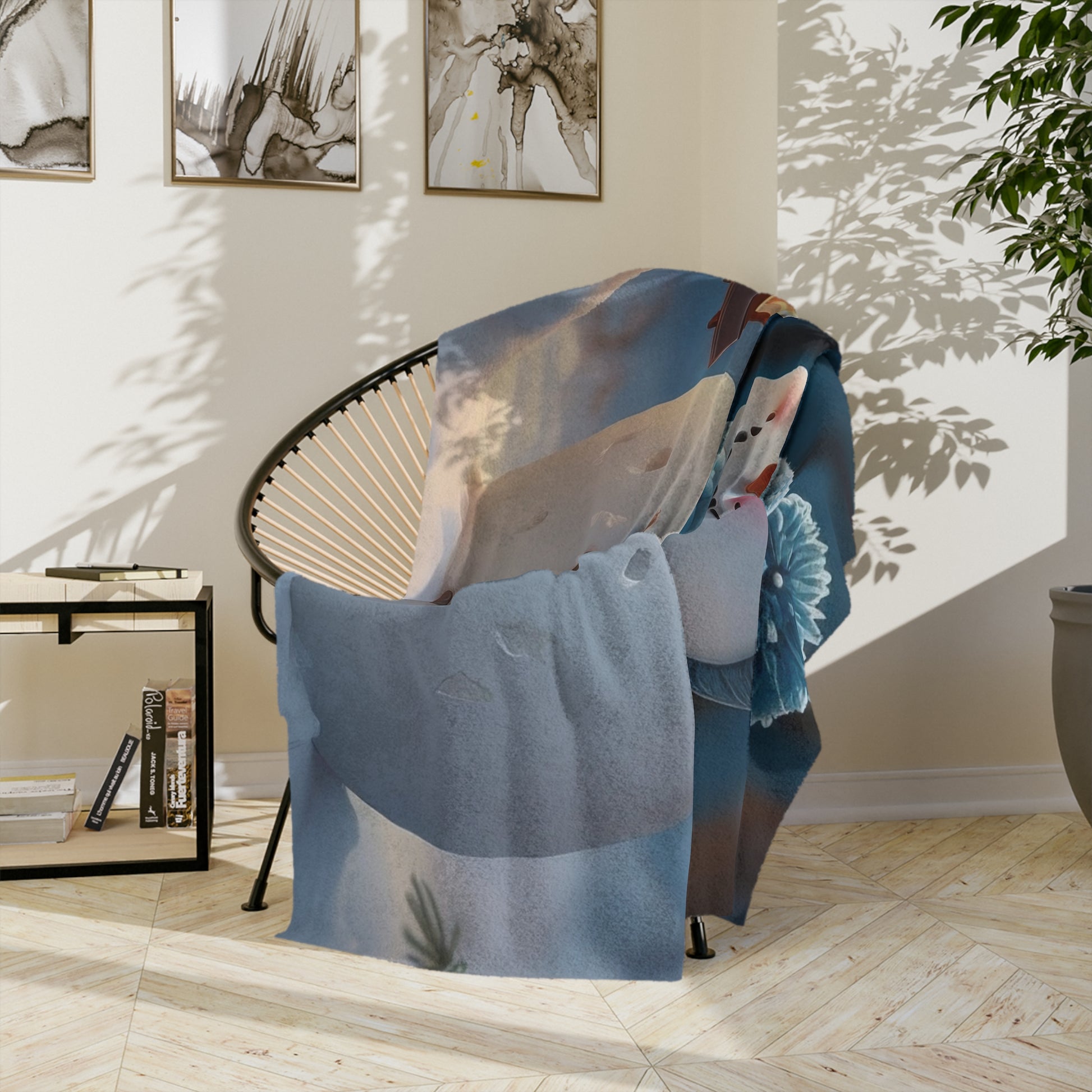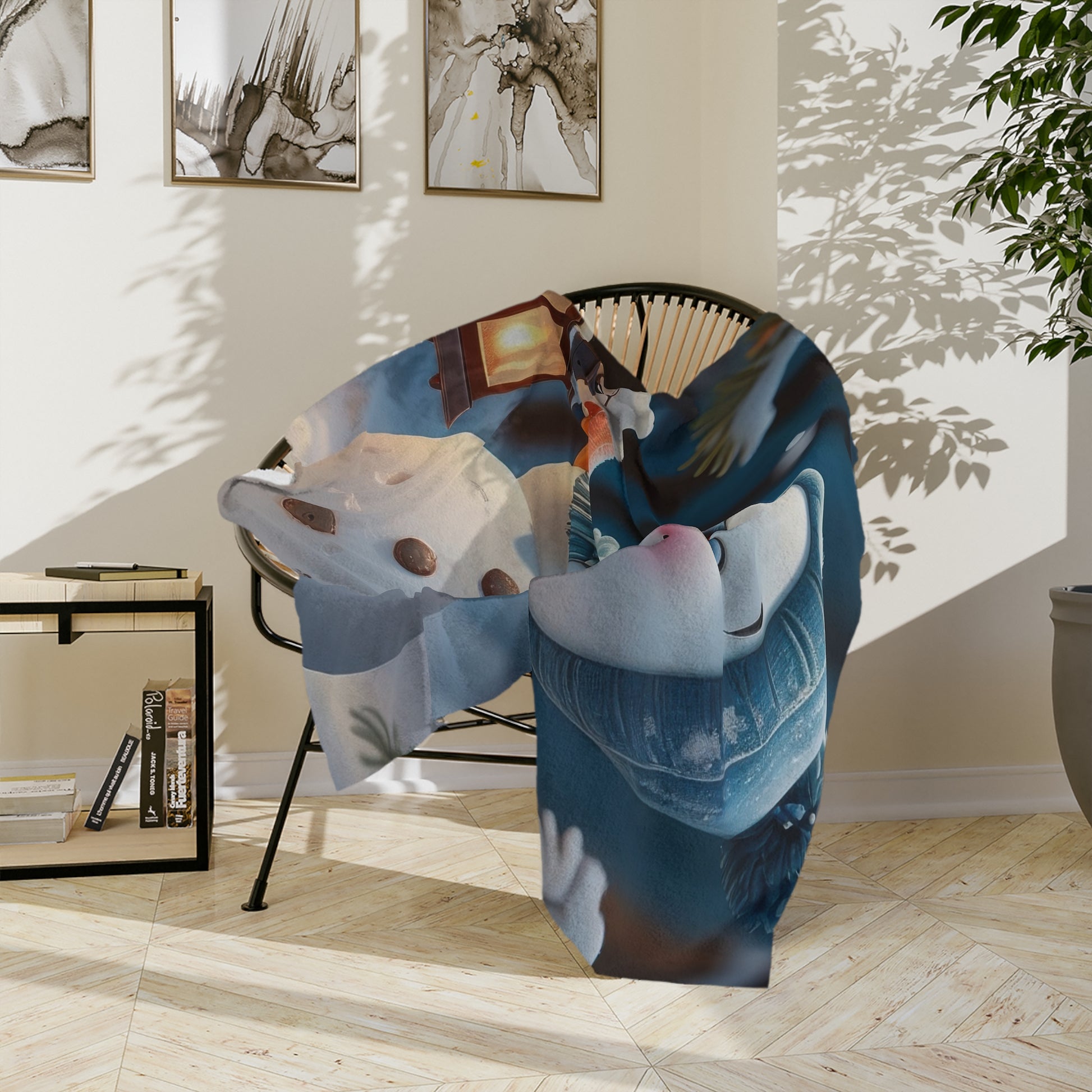 Wrap yourself in holiday warmth with this charming Velveteen Plush Blanket featuring a jolly snowman holding a glowing lantern. With rosy cheeks, a carrot nose, and a cozy blue hat and scarf, this snowman stands joyfully in a snowy forest scene bringing heartwarming winter vibes to any space. Perfect for holiday decorating, snuggling by the fire, or gifting to loved ones, this soft fleece throw adds festive cheer and magical comfort to your season.