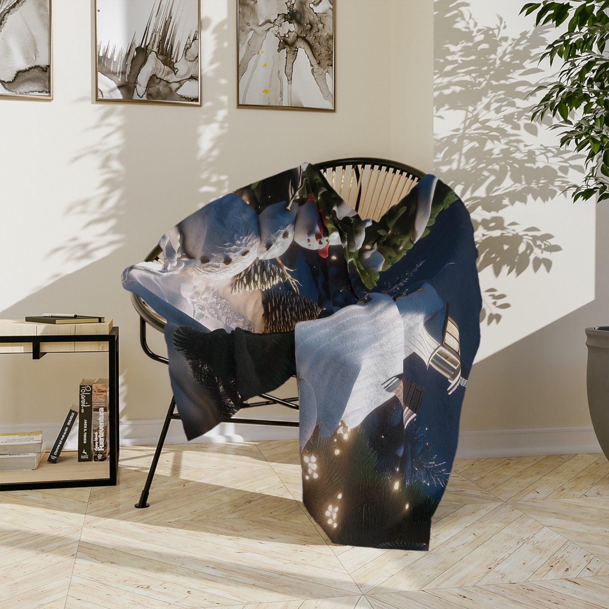 Embrace the spirit of a magical winter evening with this charming Snowman at Christmas Cottage velveteen plush blanket. The design features a snow-covered holiday cottage adorned with glowing lights, evergreen wreaths, and a cheerful snowman in a red top hat welcoming guests at the snowy path. This blanket offers a silky-soft texture perfect for snuggling up on chilly nights or enhancing your Christmas décor. Ideal for seasonal movie nights, cozy reading corners, or as a heartwarming holiday gift.