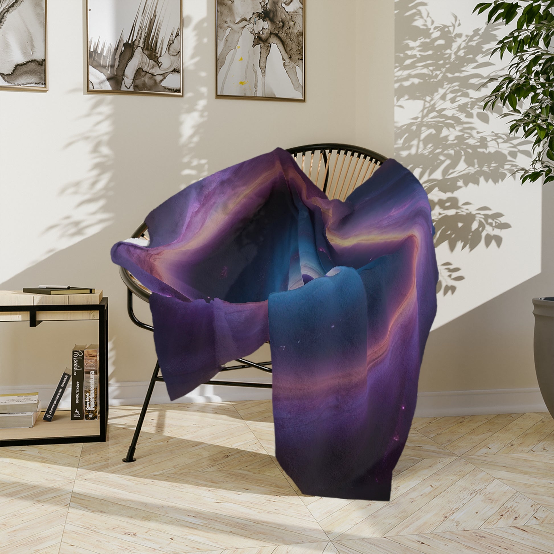 Wrap yourself in a universe of comfort with our Soft Cosmos Velveteen Blanket. This isn't just a blanket; it's a sensory experience. Crafted from an incredibly soft, lightweight velveteen fabric, it's perfect for year-round use. The stunning cosmic design, featuring a swirling galaxy and a mesmerizing black hole, brings a touch of celestial wonder to any room. Whether you're draping it over a couch for a pop of color, using it as a cozy throw for movie nights, or displaying it as a unique wall tapestry, this blanket is a versatile and beautiful addition to your home. The velvety smooth texture feels gentle against your skin, and its lightweight nature makes it easy to take with you on trips or simply move from room to room. It's an ideal gift for stargazers, science lovers, and anyone who appreciates a little bit of magic in their life.