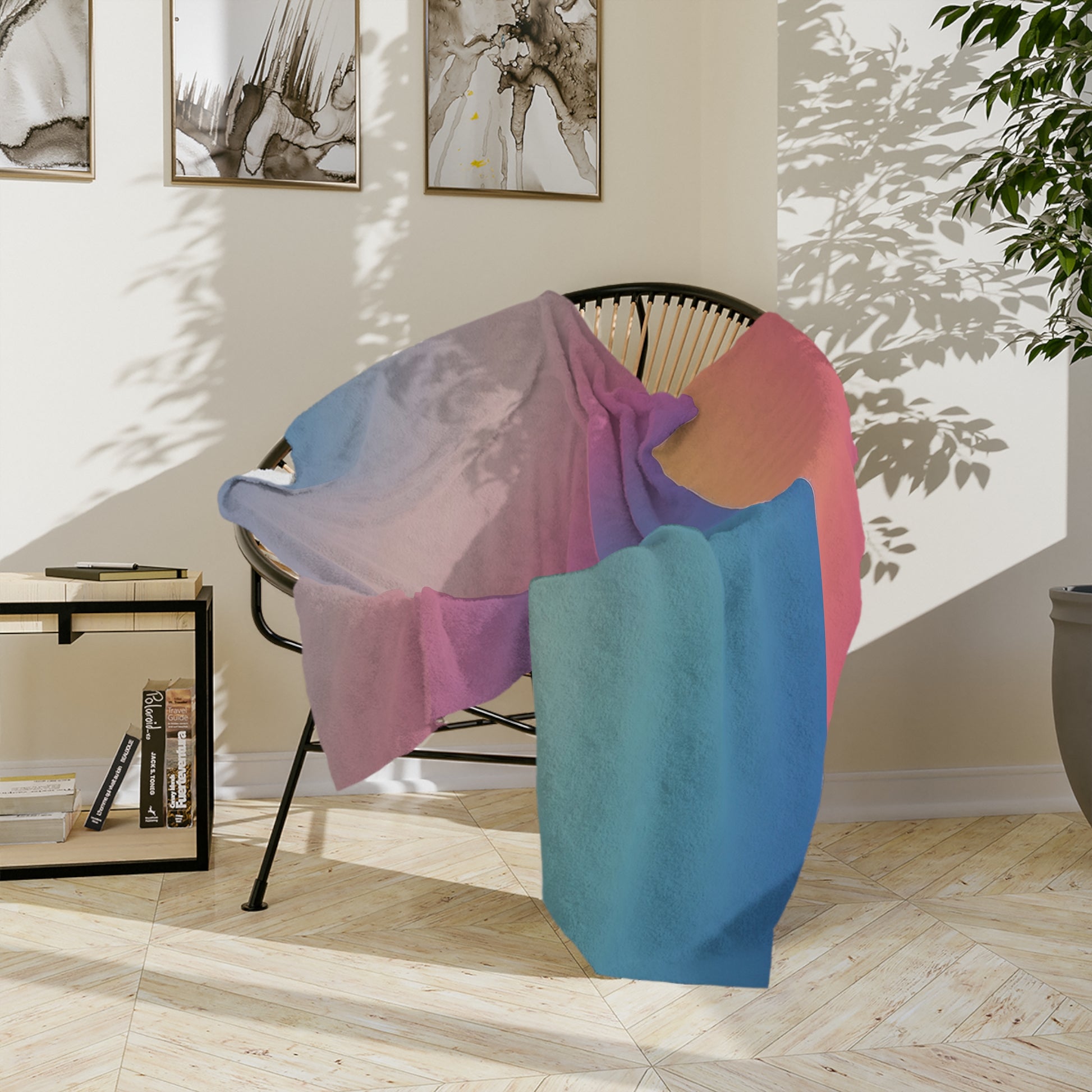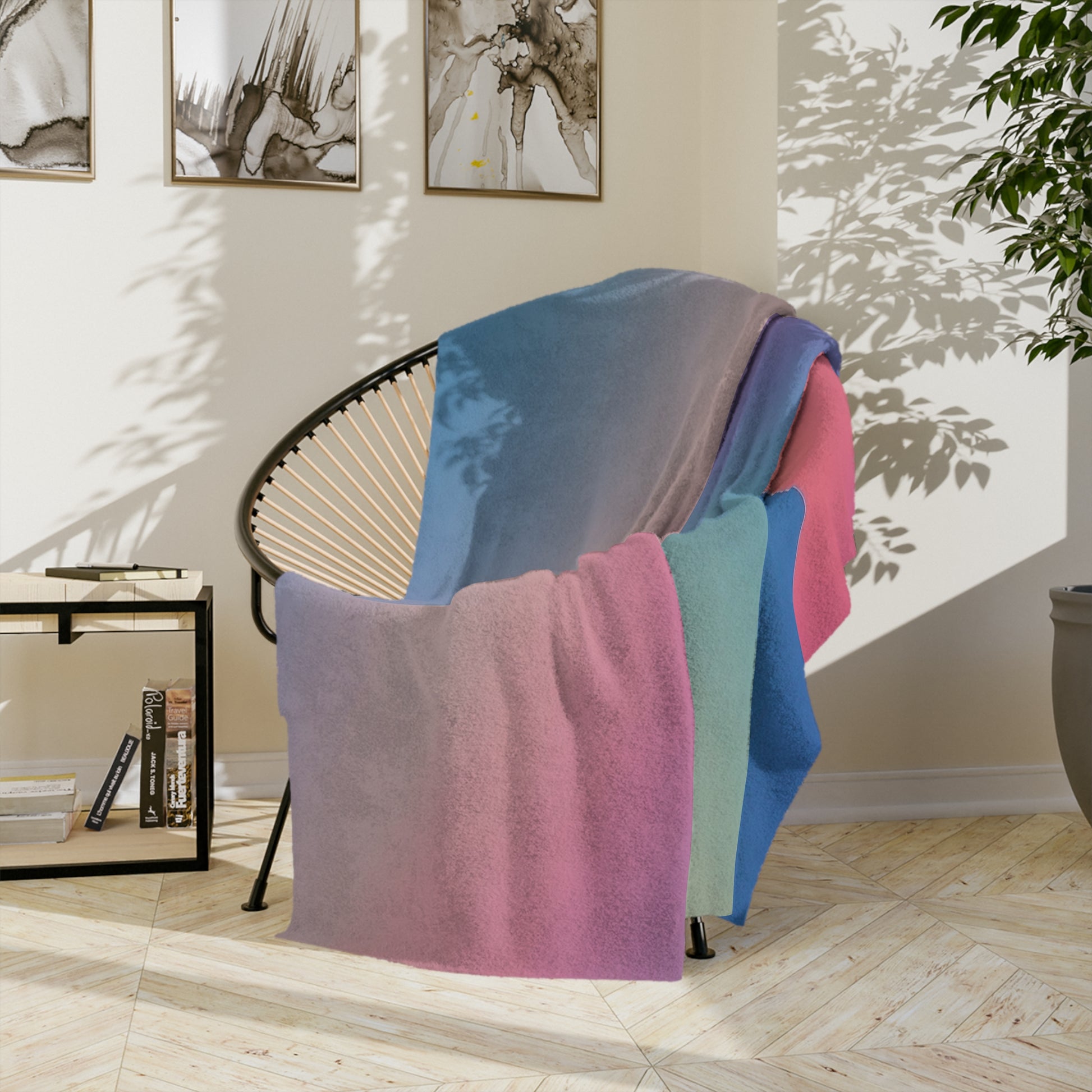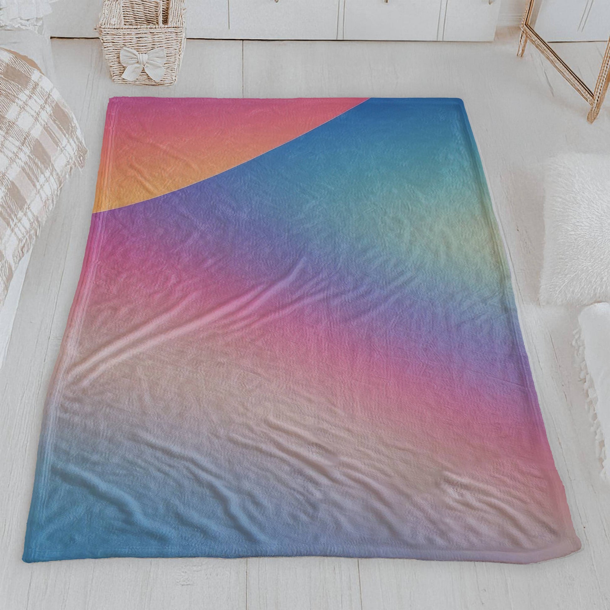 Wrap yourself in a cloud of calm with our beautiful Soft Gradient Velveteen Blanket. This blanket features a serene and modern abstract design with a smooth gradient of soft pastel colors, blending from warm peach and pink to calming purple and cool blue. It's the perfect throw for anyone who loves minimalist design, soothing colors, and creating a peaceful atmosphere.