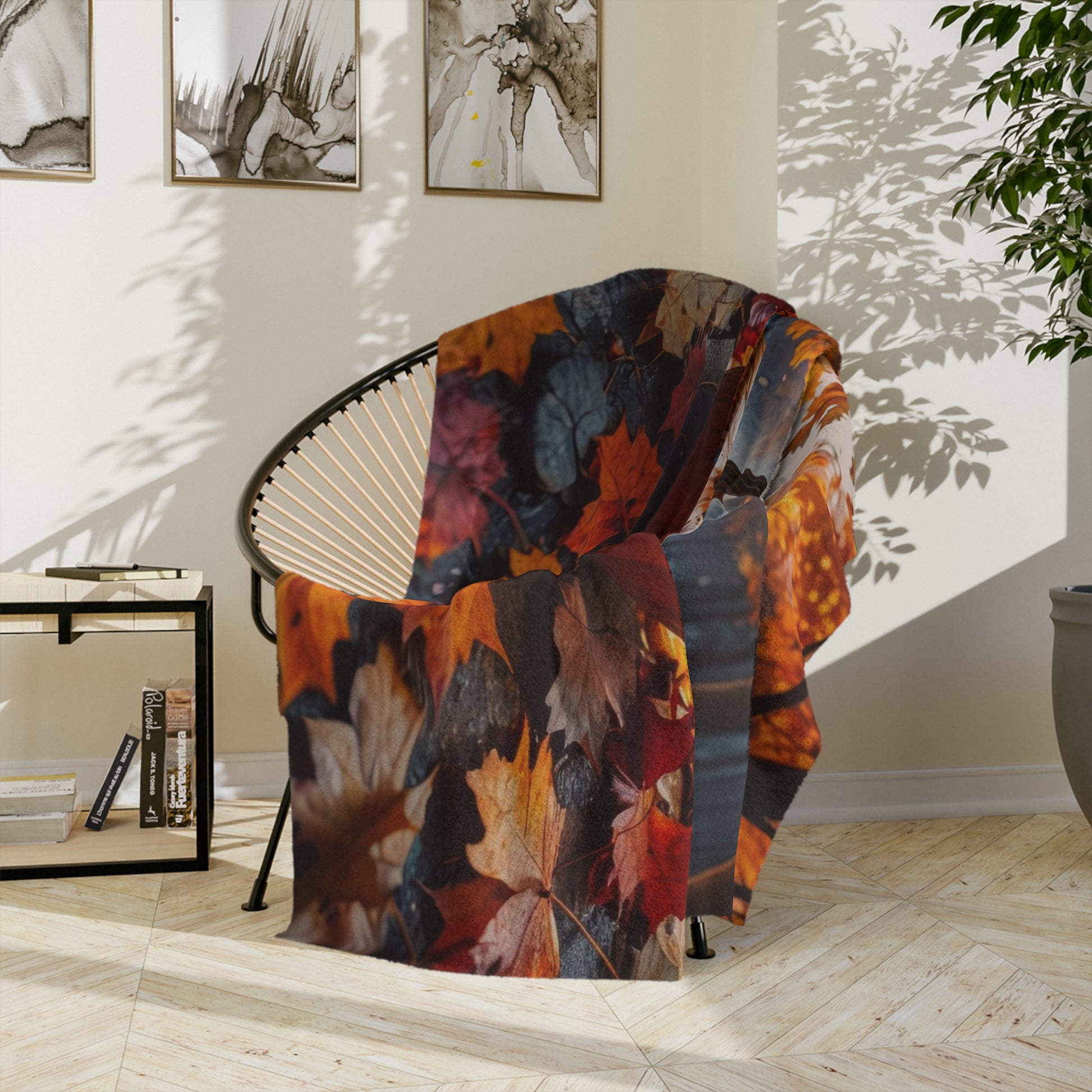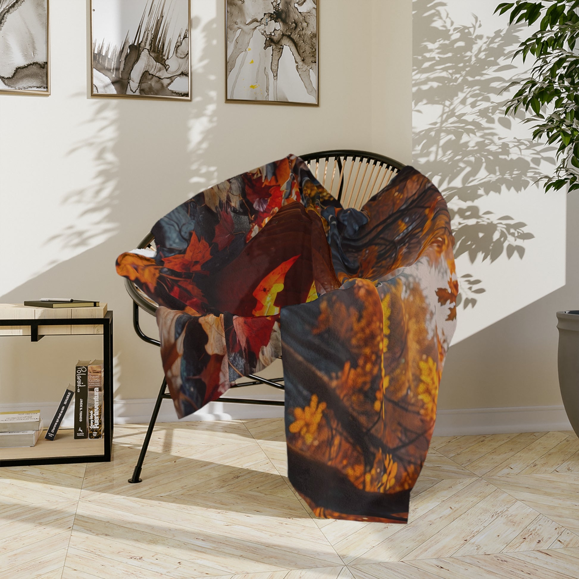Immerse yourself in the magic of autumn and Halloween with our Spooky Forest Jack-o'-Lantern Plush Blanket! This ultra-soft and cozy throw features a captivating scene of a classic, menacingly grinning jack-o'-lantern, its eyes and smile glowing with an eerie light, set amidst a vibrant forest floor covered in a rich tapestry of red, orange, and yellow autumn leaves. The background showcases tall trees bathed in the warm hues of fall, creating a truly enchanting yet spooky atmosphere. Perfect for adding a festive and atmospheric touch to your home decor, this lightweight plush blanket is ideal for snuggling up on crisp autumn evenings, decorating your living room or bedroom, or as a unique gift for any Halloween enthusiast or nature lover. Made from premium, comfortable fabric, it offers exceptional warmth and a beautiful visual appeal for the season.