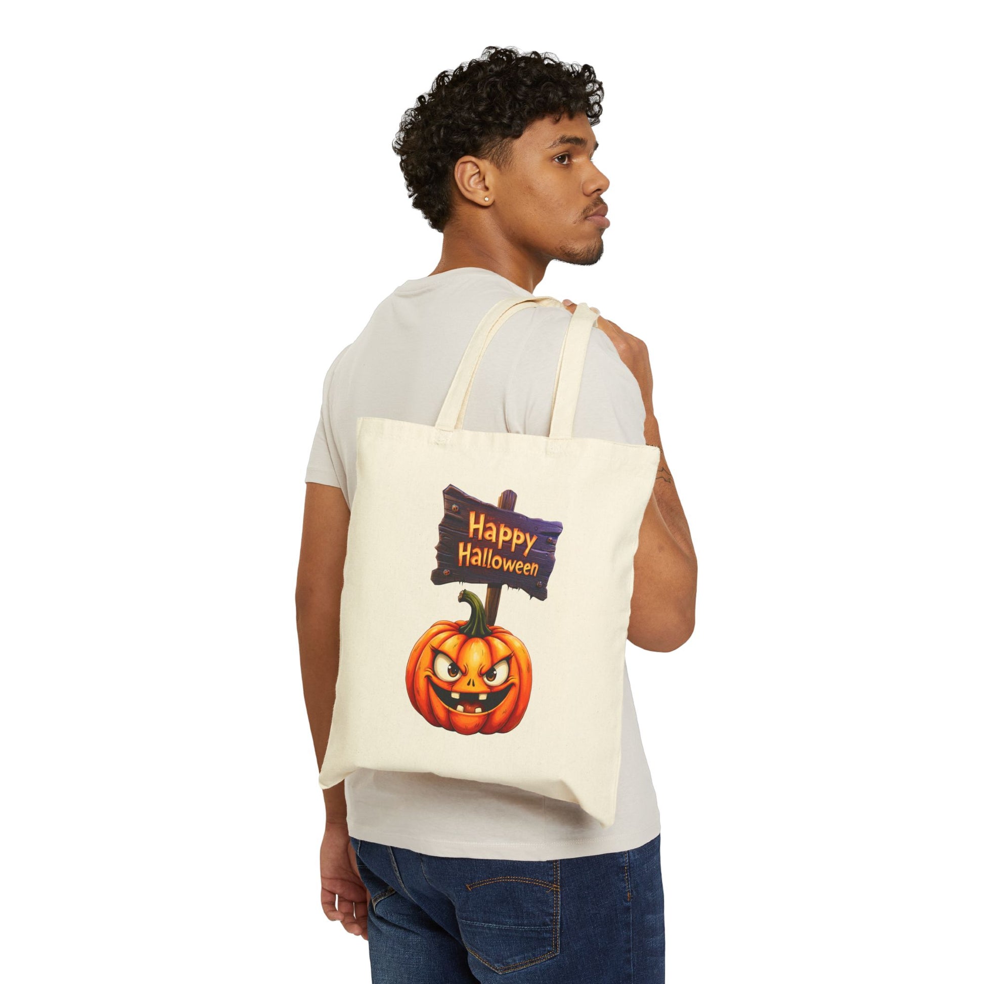 Spooky Pumpkin Reusable Cotton Canvas Tote Bag