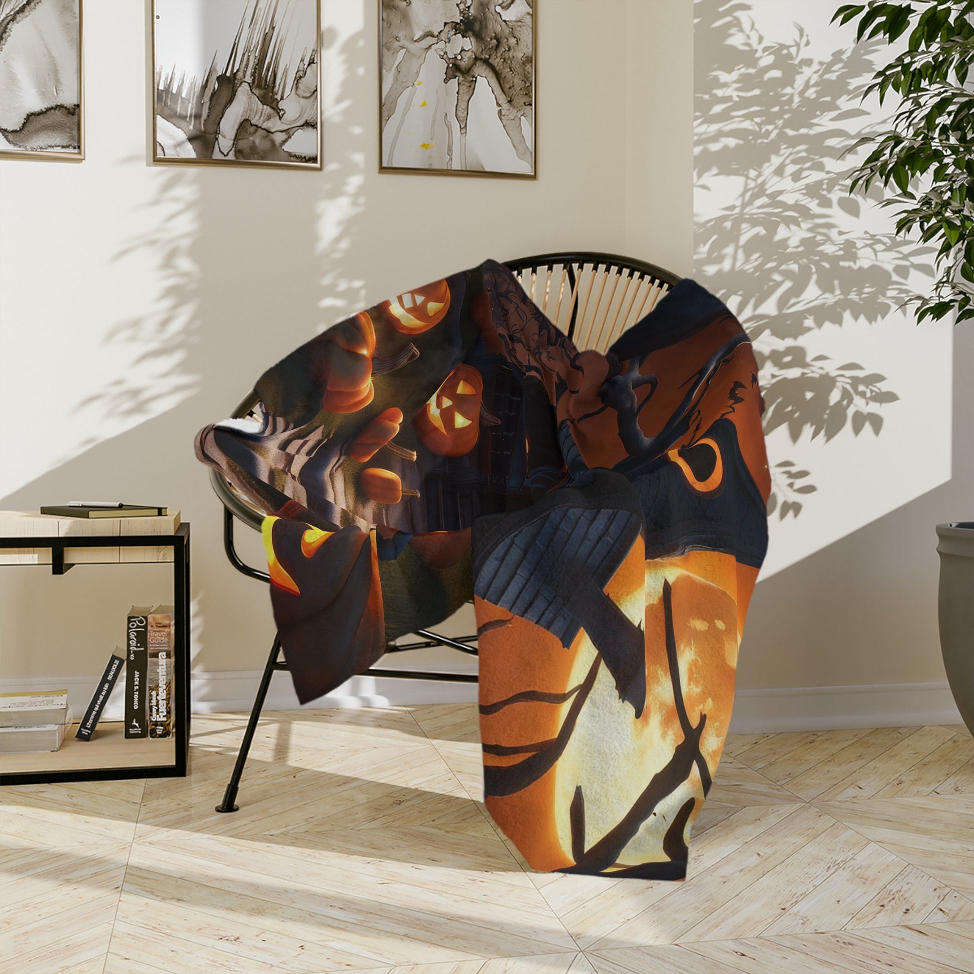 Unleash the spooky charm of Halloween with our Spooky Spider Haunted House Plush Blanket! This incredibly soft and cozy throw features a chillingly delightful scene: a classic haunted house with a prominent spider silhouette in a window, its warm glowing lights contrasting with the dark, gnarled trees and a magnificent fiery orange full moon. A winding path leads to the house, illuminated by an array of grinning jack-o'-lanterns, while bats flit across the ominous sky. Perfect for creating an unforgettable Halloween ambiance, this lightweight plush blanket is ideal for snuggling up during frightful movie marathons, adding a festive touch to your sofa or bed, or as a unique gift for any Halloween enthusiast. Made from premium, comfortable fabric, it's designed for both warmth and a touch of spooky elegance.