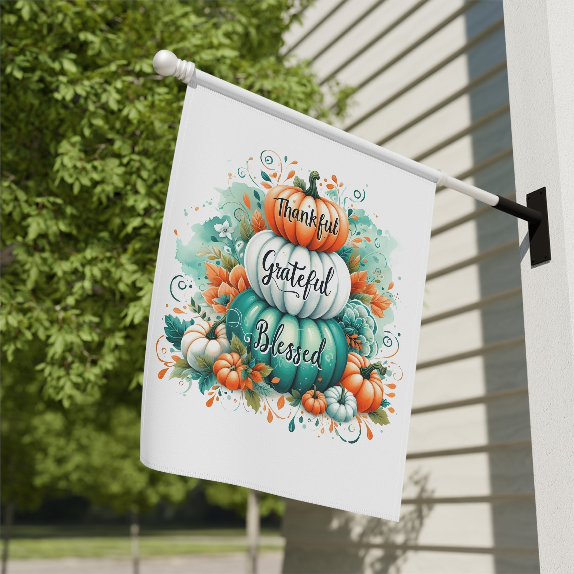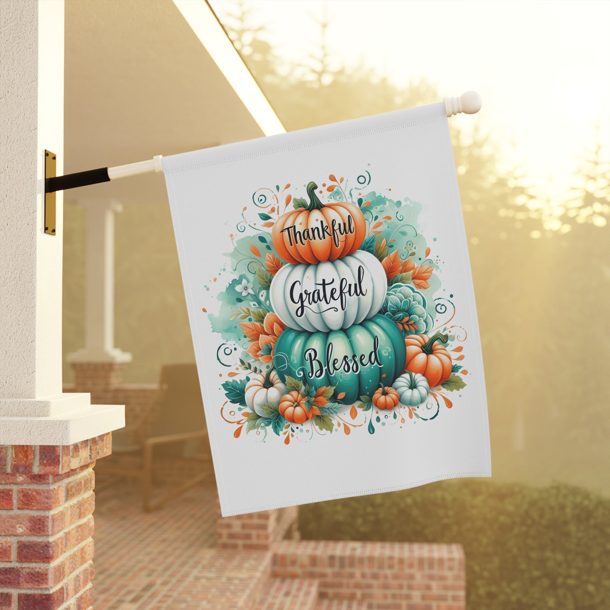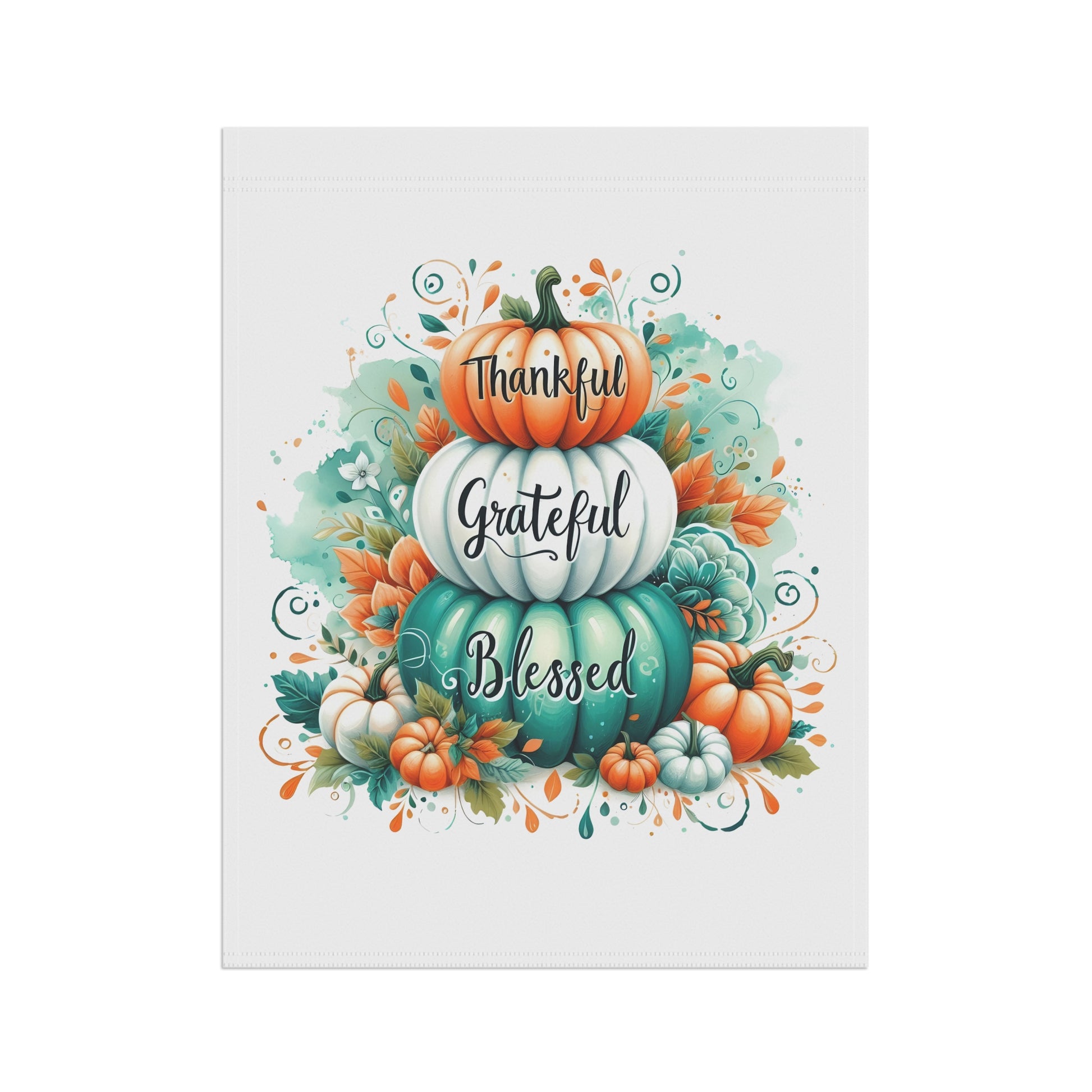 "Thankful Grateful Blessed" Pumpkin Stack Garden Flag