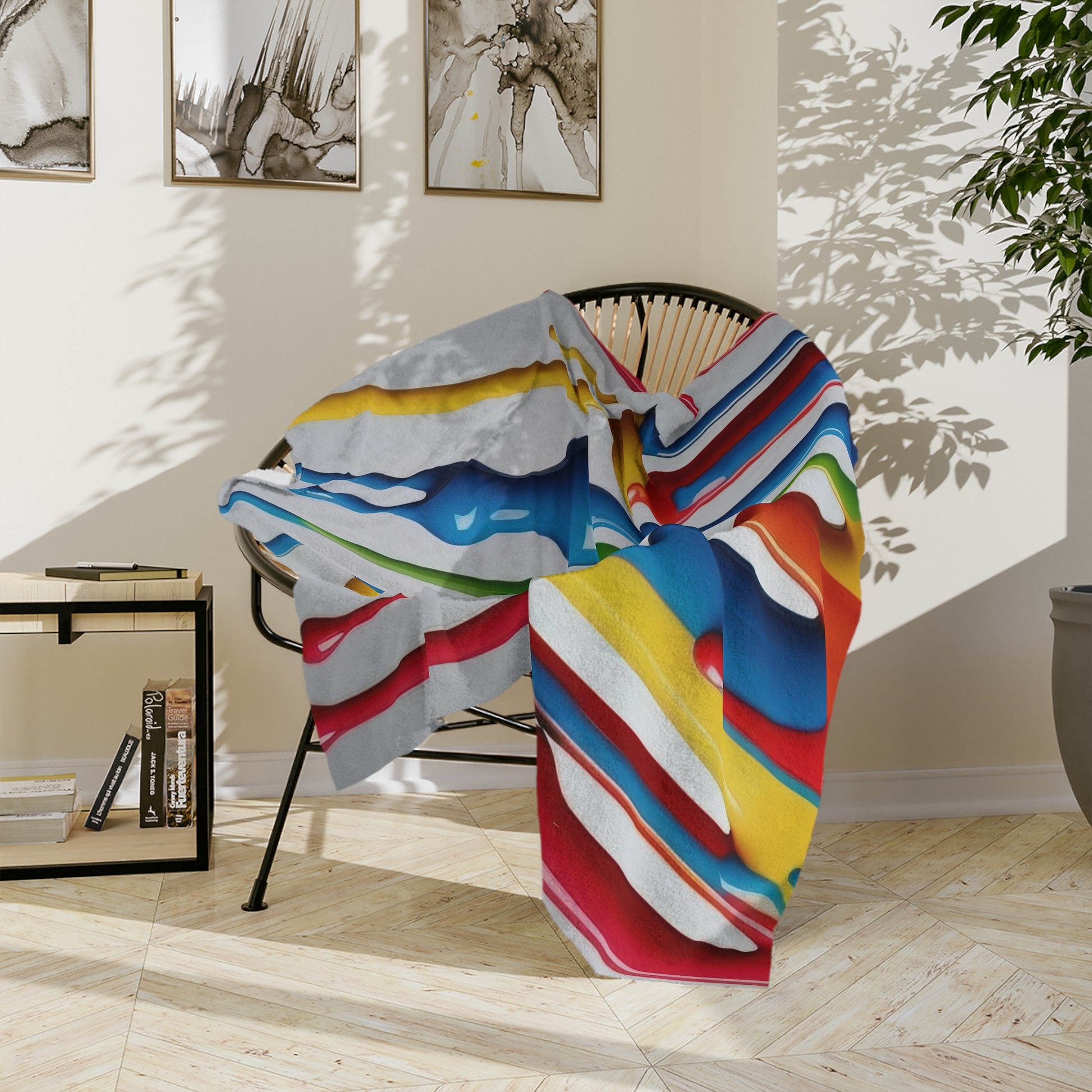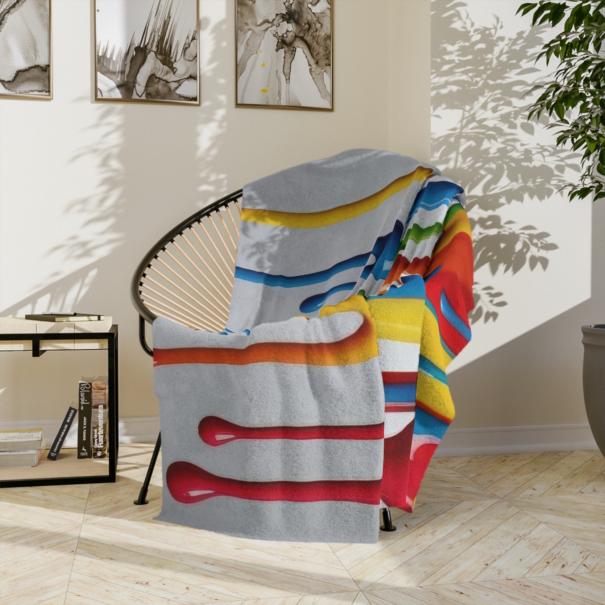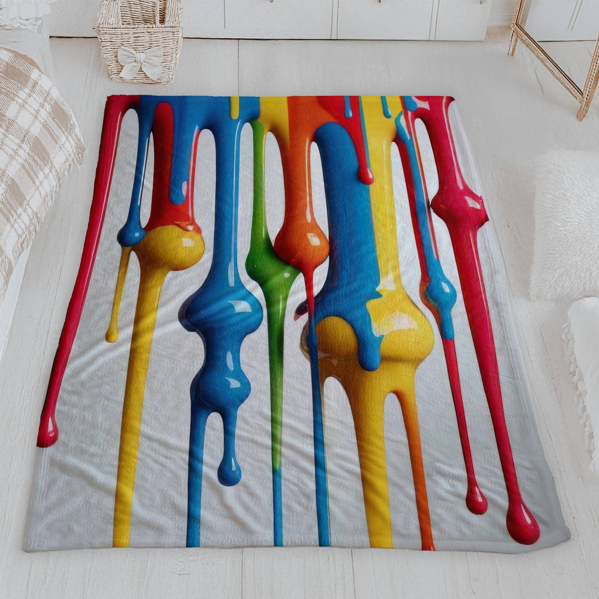 Wrap yourself in a masterpiece of color with our Vibrant Drip Velveteen Blanket. This isn't just a blanket; it's a dynamic and fun piece of art for your home. Made from incredibly soft, lightweight velveteen, it's the perfect way to add comfort and style to any room. The high-definition print features a cascade of bold, dripping colors, creating a lively and whimsical design that is sure to be a conversation starter. Whether you drape it over a couch for an eye-catching accent, use it as a cozy throw for movie nights, or even display it as a unique wall tapestry, this blanket is as versatile as it is beautiful. The velvety-smooth texture feels gentle against your skin, and its lightweight nature makes it easy to enjoy year-round. It’s an ideal gift for art lovers, creative spirits, and anyone who wants to bring a pop of color and personality into their life.