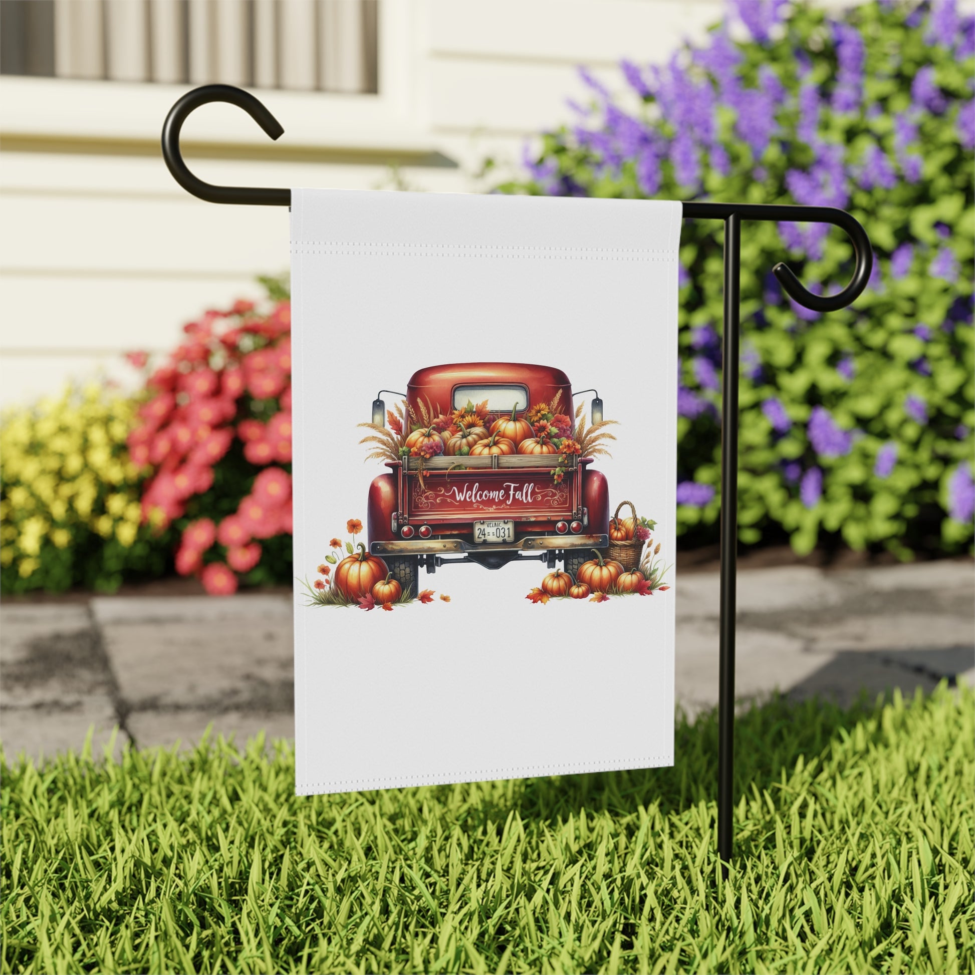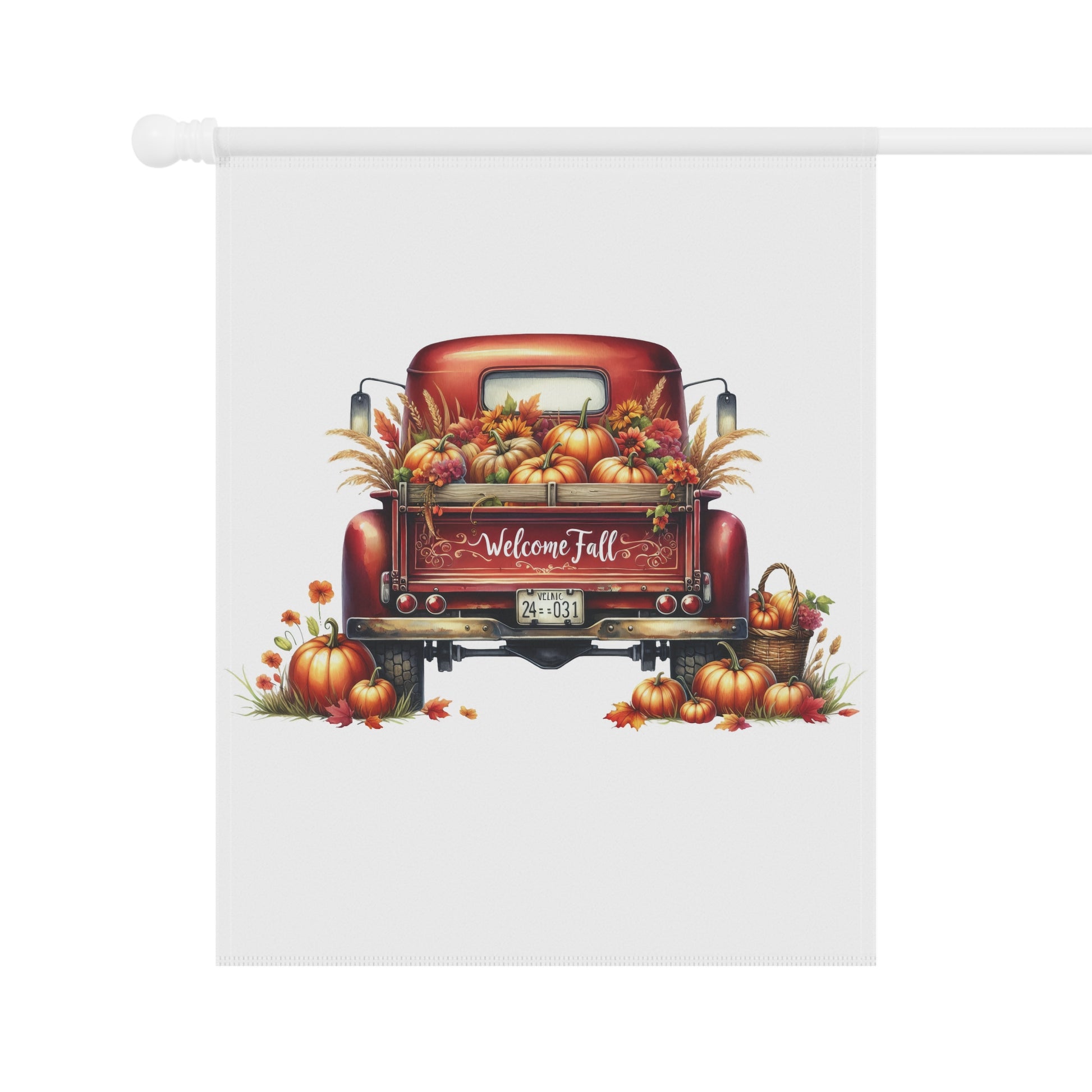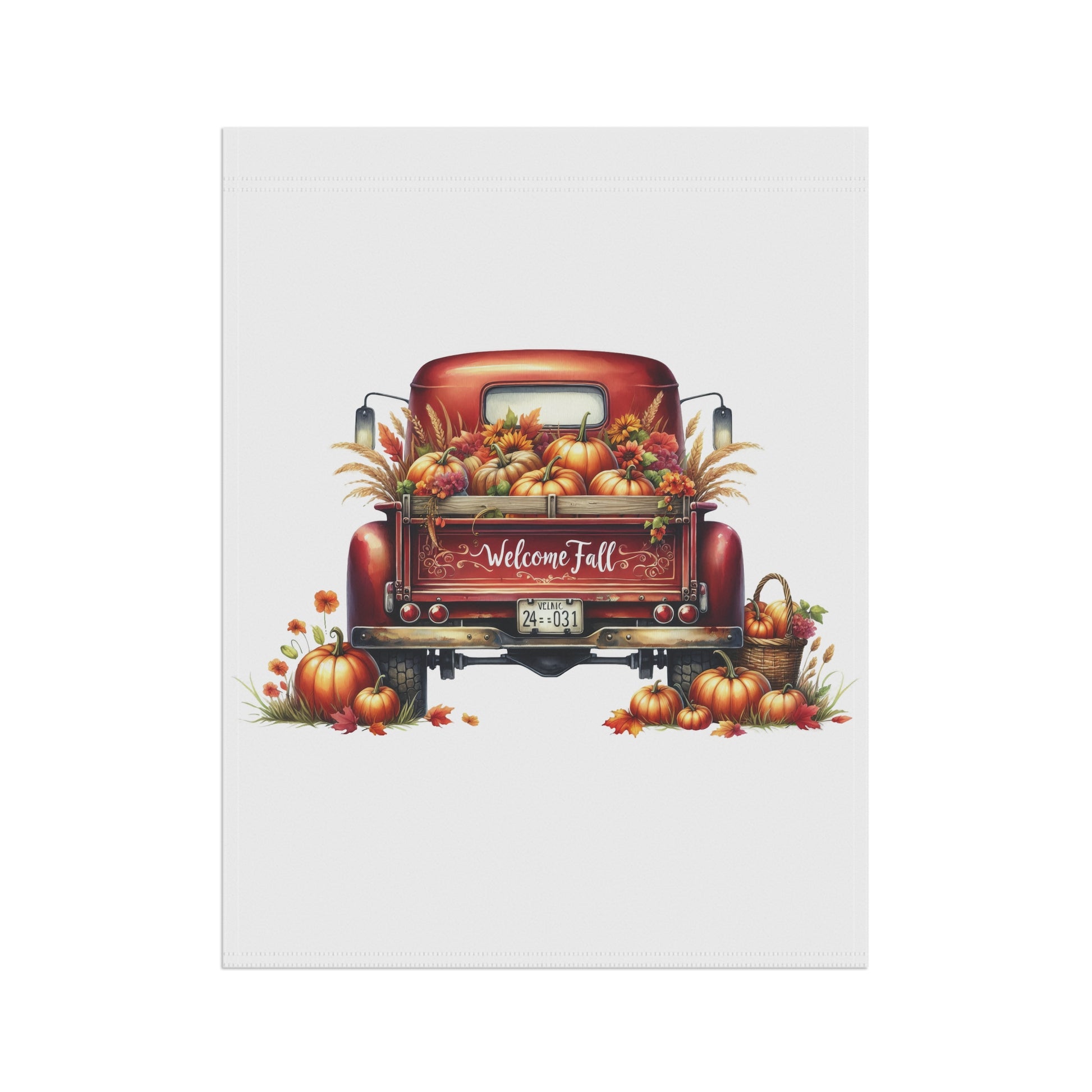 Welcome the autumn season with our charming "Welcome Fall" garden flag! This beautiful flag features a classic vintage truck overflowing with pumpkins and fall foliage, bringing rustic charm to your outdoor space. Perfect for adding a touch of farmhouse fall decor to your home, it's an ideal way to celebrate the cozy vibes of autumn.