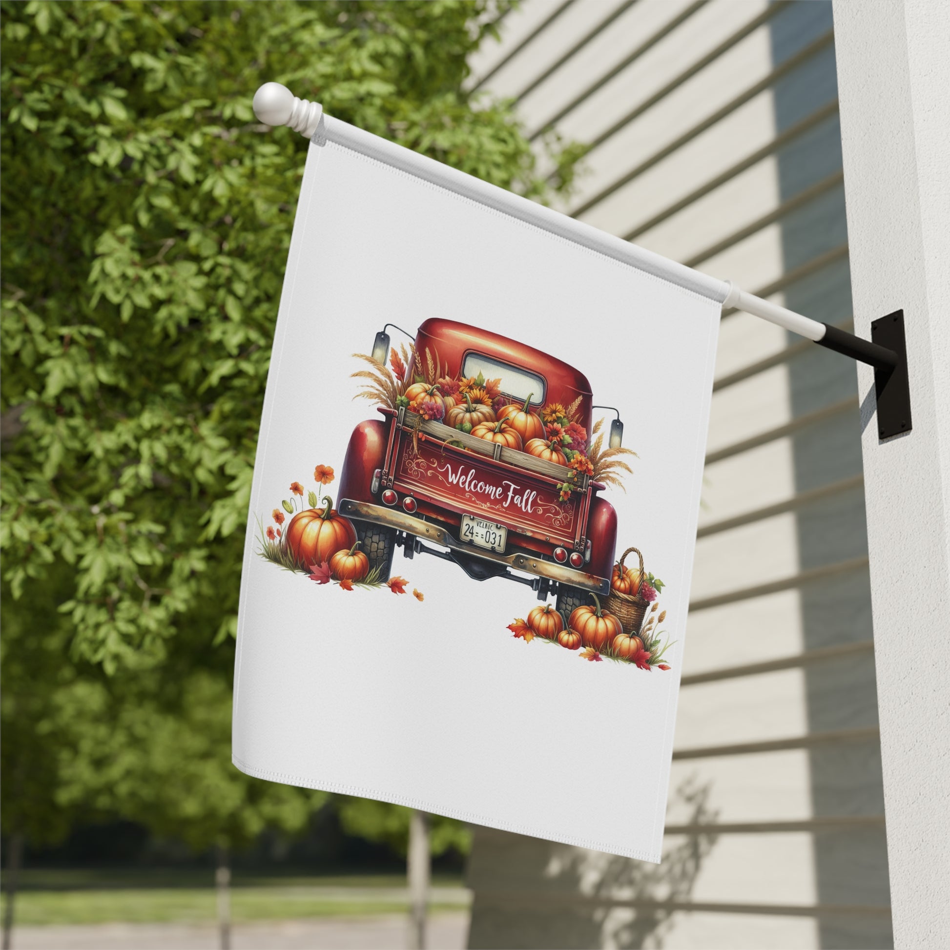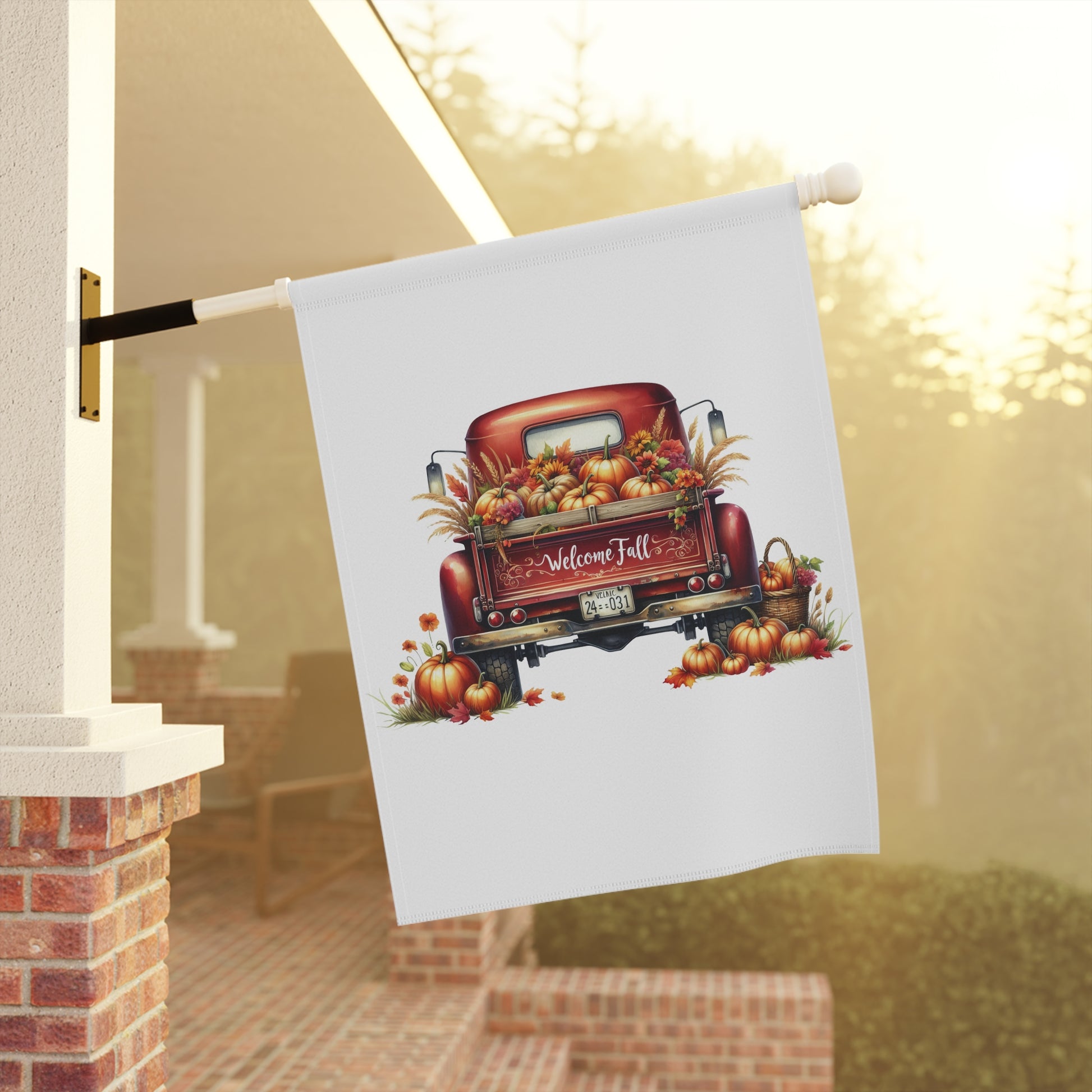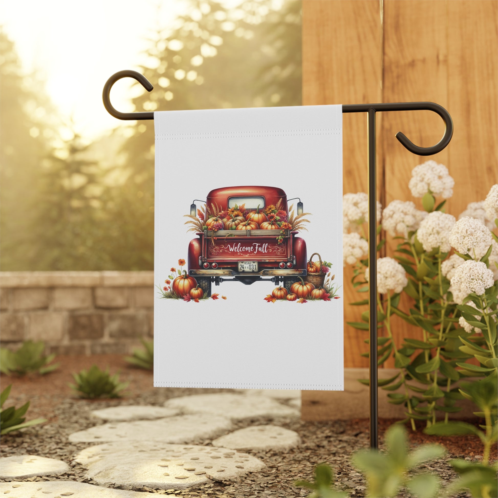 Welcome the autumn season with our charming "Welcome Fall" garden flag! This beautiful flag features a classic vintage truck overflowing with pumpkins and fall foliage, bringing rustic charm to your outdoor space. Perfect for adding a touch of farmhouse fall decor to your home, it's an ideal way to celebrate the cozy vibes of autumn.
